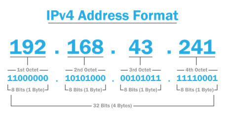 آدرسهای IPv4 از سیستم آدرسدهی ۳۲ بیتی استفاده میکنند. این آدرسها بهصورت چهار بلوک عددی بههم پیوسته با نقطه (مانند 192.168.1.1) نمایش داده میشوند. هر بلوک شامل یک عدد بین ۰ تا ۲۵۵ است، که این ساختار موجب میشود که فضای آدرسدهی IPv4 به ۴.۳ میلیارد آدرس محدود شود. اگرچه این تعداد در ابتدا برای برآورده کردن نیازهای ارتباطات جهانی کافی به نظر میرسید، اما با افزایش روزافزون دستگاههای متصل به اینترنت، بهویژه در عصر اینترنت اشیاء (IOT)، فضای آدرسدهی IPv4 به تدریج به نقطهای بحرانی رسید.