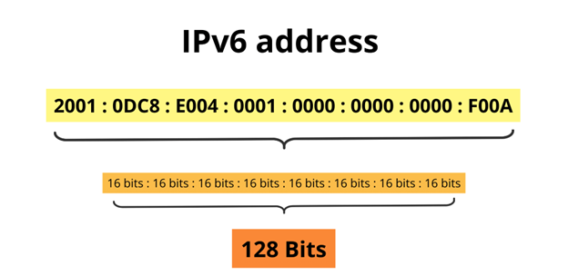 برای رفع محدودیتهای IPv4 تصمیم به معرفی IPv6 شد. آدرسهای IPv6 از یک سیستم آدرسدهی ۱۲۸ بیتی بهره میبرند که باعث میشود تعداد آدرسهای ممکن به میزان بینهایت افزایش یابد. آدرسهای IPv6 بهصورت هشت بلوک عددی شانزدهتایی بههم پیوسته با دو نقطه (مانند 2001:0dc8:e004:0001:0000:0000:0000:f00a) نمایش داده میشوند. این سیستم آدرسدهی بهطور قابل توجهی ظرفیت آدرسدهی شبکهها را گسترش میدهد و نیاز به آدرسهای بیشتر در آینده را تامین میکند. IPv6 همچنین مزایای دیگری مانند بهبود کارایی، امنیت بیشتر، پشتیبانی بهتر از پیکربندی خودکار آدرس و مسیریابی مؤثرتر را فراهم میآورد.